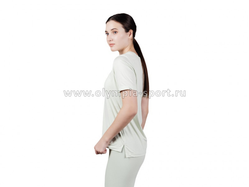 Футболка свободного прямого кроя. Выполнена из легкой, эластичной, «дышащей» ткани, с перфорацией. Практически не ощущается на теле, не сковывает движений. Футболка имеет два боковых разреза. Круглая горловина. Плоские швы. Втачной рукав.
