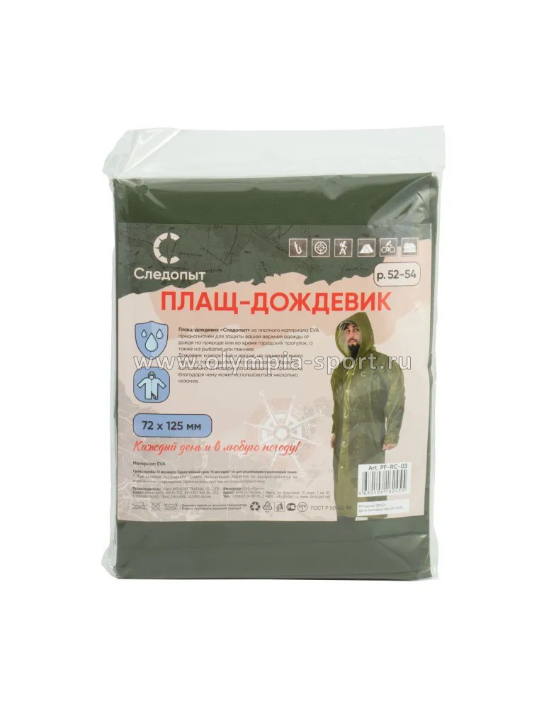 Дождевик Следопыт EVA 76х130см на кноп. с капюш. р.56-58 , размер: 56-58 в наличии по цене 330 рублей в интернет-магазине спорттоваров «Олимпия» в Москве. Мы предлагаем лучшую стоимость на категорию одежда, перчатки, носки и принадлежности. Приобрести Дождевик Следопыт EVA 76х130см на кноп. с капюш. р.56-58 , размер: 56-58 можно оформив заказ в интернет-магазине, или отправив заявку по почте, а также по телефону +7 917 270-46-61 или самостоятельно забрать товар в нашем магазин. Доставка по РФ возможно ТК «СДЭК», «DPD», «ПЭК» или Деловые линии.